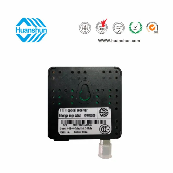 環(huán)順的HSGS10076/2光接收機是專為CATV網(wǎng)絡的FTTH 應用而設計的入戶型光接收機。具有結構小巧緊湊、式樣美觀、 應用方便等 特點,在高達1000Mhz的帶寬下能夠提供穩(wěn)定的輸出電平和優(yōu)異的性能指標,具有極寬的光功率工作范圍。